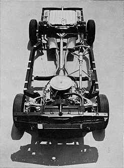New on Pontiacs for 1965, the swept-hip perimeter frame allows occupants more space for lower overall height, reduces weight. |